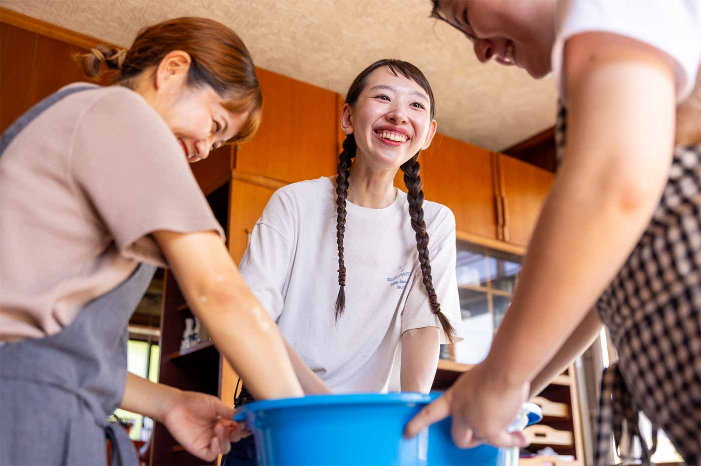 原料となる黒糖とお米、そして水のお話を聞きながら、自社農園の黒糖を試食。サンゴ礁が隆起した喜界島ならではの、ミネラル分豊富な硬水や米麹の説明を受け、酒の製造工程を視察できます。最後は焼酎の試飲タイム。工程や酒造りへの想いを聞いたうえで飲むお酒は格別です。